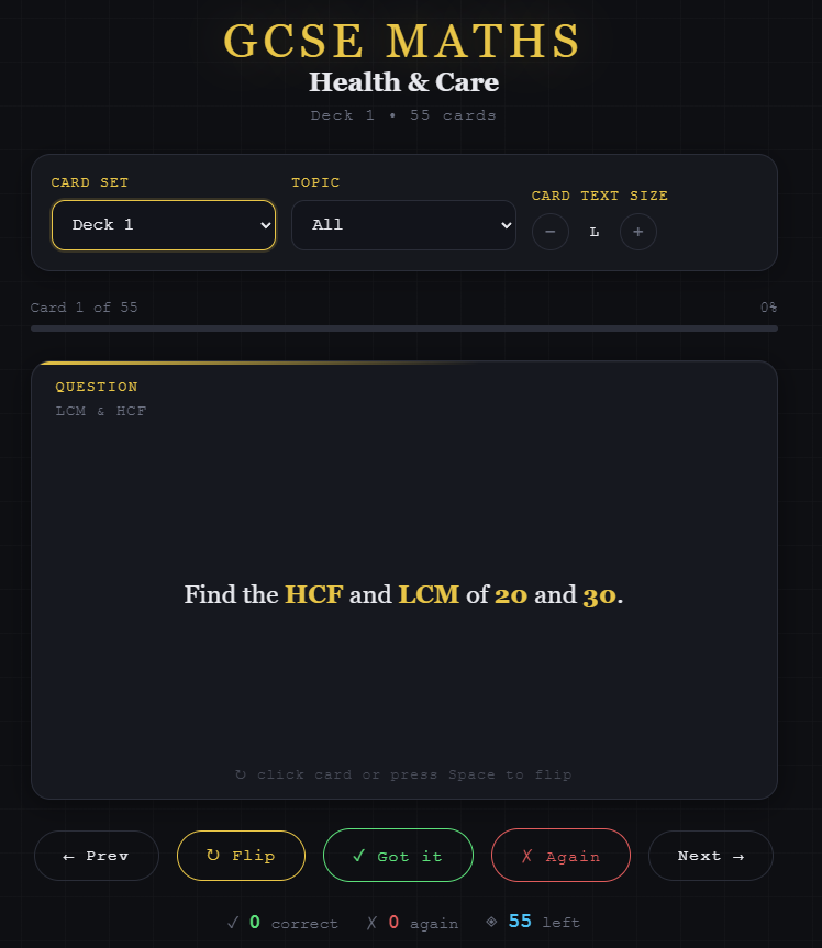 GCSE Maths Flash Card App